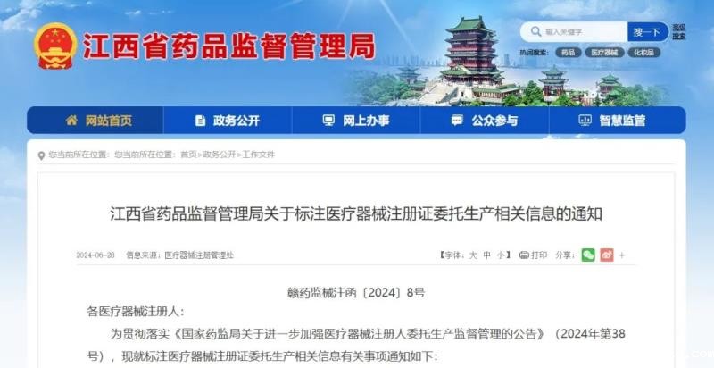 近日,继江苏省、湖北省、广东省、湖南省、广西壮族自治区、云南省、吉林省(具体政策可点击右侧链接回顾→医疗器械委托生产信息标注)后,江西省药监局也发布了《关于标注医疗器械注册证委托生产相关信息的通知》,相关事项具体如下: