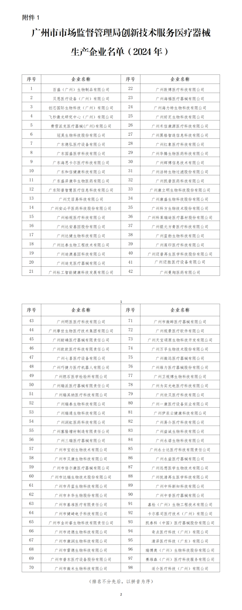经前期遴选,纳入《广州市市场监督管理局创新技术服务医疗器械生产企业名单(2024年)》的企业(简称《名单》,见下方附件图片),共包括广州红象医疗科技有限公司、广州科莱瑞迪医疗器材股份有限公司、广州黑格智造信息科技有限公司等98家企业,原则上每家企业自主选择不多于三个拟注册单元。